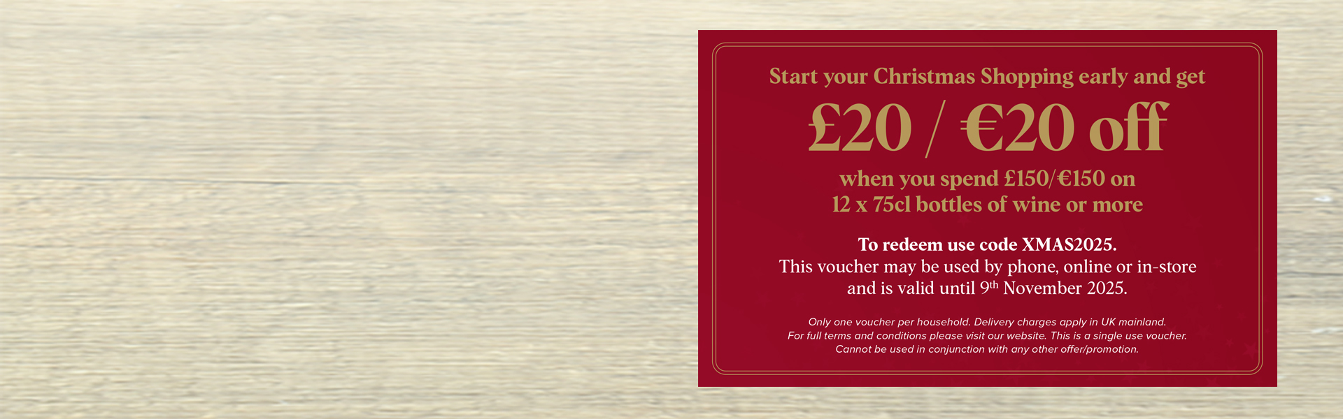 Get £20/€20 off when you spend £150/€150 on 12x75cl bottles of wine or more*. To redeem use code XMAS2025.