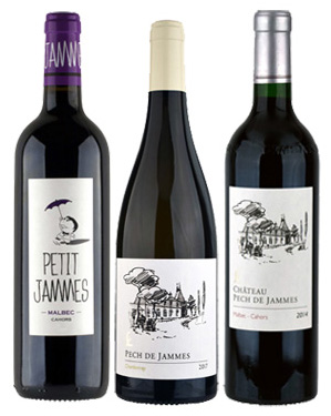 Chateau Pech de Jammes 2015 The flagship wine from the property. 100% Malbec, wonderful balance of fruit from the vineyards highest slopes, intense nose of black fruits with hints of eucalyptus, savoury and silky with the depth to work with robust meat dishes. Decant if possible, for an hour. Only 180 bottles.